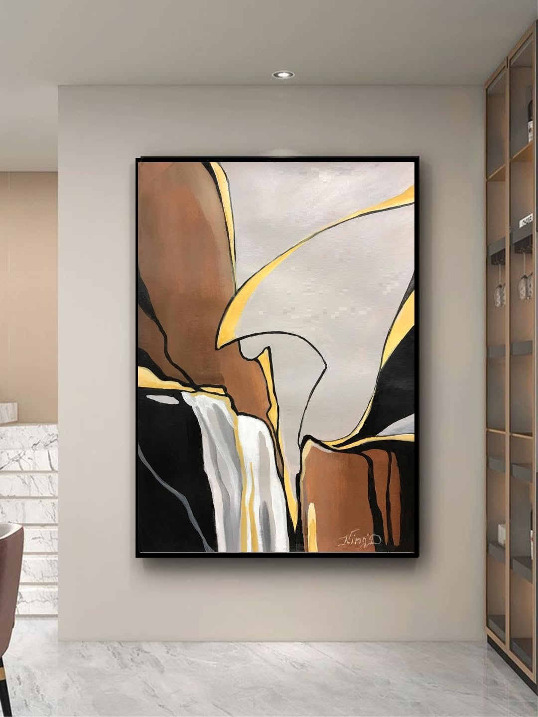 - Sophisticated Golden Abstract Design – Artsense wall painting with golden, grey, and earthy tones adds luxury and elegance to any interior.