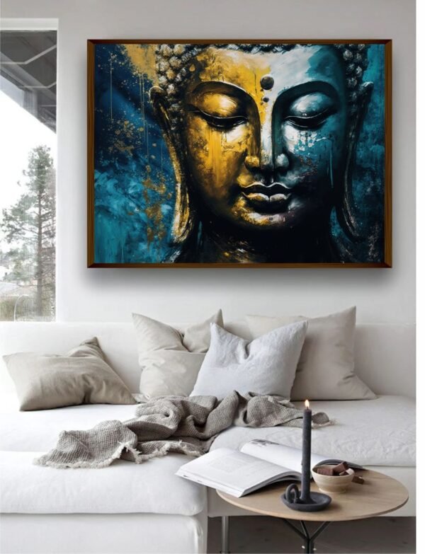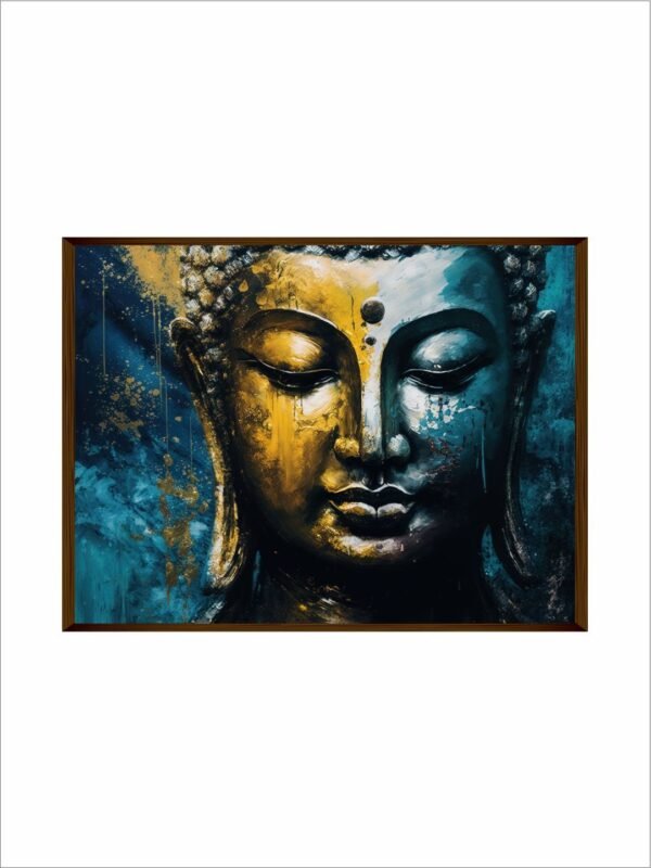 Artsense 3d look Golden Dark landscaped Buddha lucky canvas Painting for wall decoration Abstract wall painting for living room big size painting for home decoration with frame-Multicolor -20×30 inches/(50x71cm)