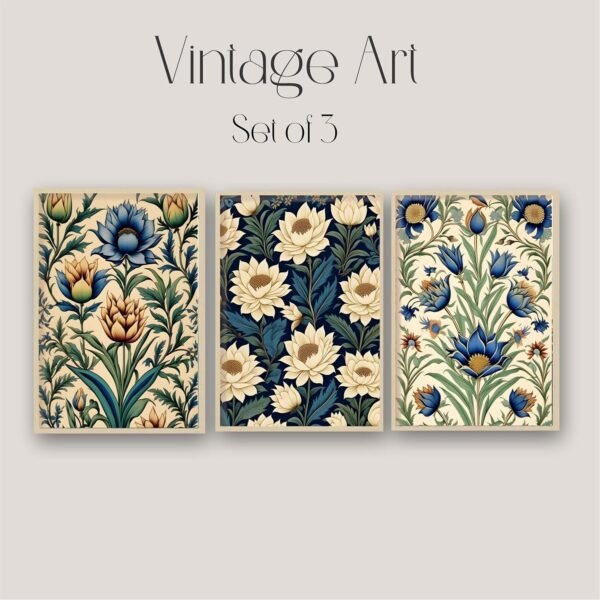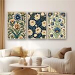 Artsense Floral Wall Art Set of 3 Frames – Large Botanical Lotus & Blue Flower Prints – Traditional Indian Style Artwork – Framed Vinyl Paintings with Plexiglass for Living Room, Bedroom & Home Decor – Ready to Hang (10×13)