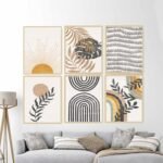 - Abstract minimal designs – Sun, leaves, and geometric patterns add elegance and contemporary charm to any wall