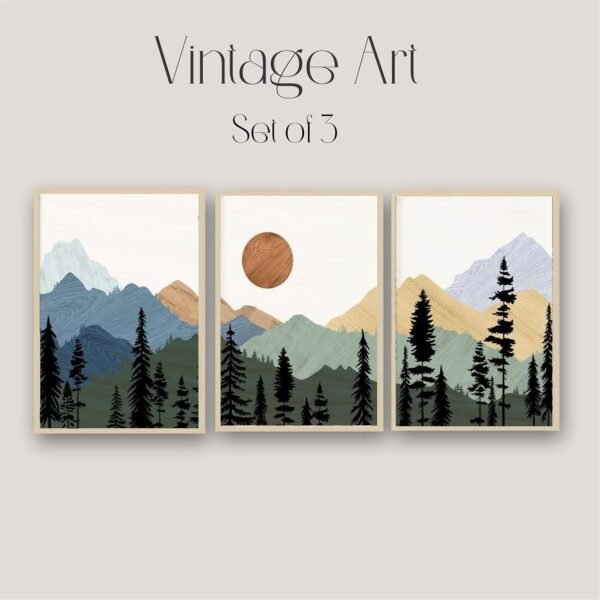 Bring the beauty of nature indoors with the Artsense Mountain Landscape Wall Art Set of 3. Each frame measures 16×24 inches (40×60 cm) and features stunning scenic artwork of mountains, pine forests, and the rising sun in earthy tones. Printed on premium vinyl and protected with plexiglass, these framed artworks are durable, dust-resistant, and easy to clean with a wet wipe. The lightweight frames come ready to hang, making them an effortless way to transform your living room, bedroom, hallway, or office with a serene mountain vibe. This set also makes a thoughtful gift for nature lovers, housewarmings, weddings, or birthdays.
