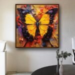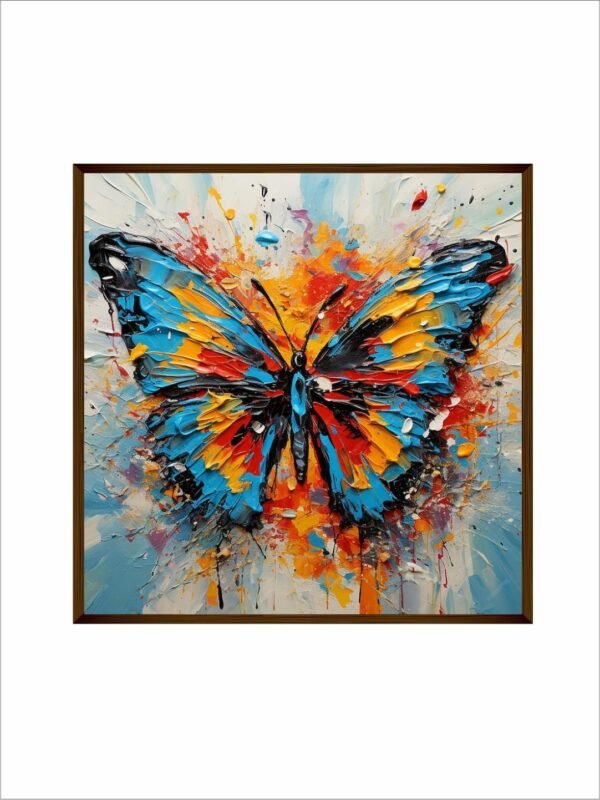 Artsense Painting for wall decoration Abstract wall painting for living- Blue Mix butterfly painting for home decoration with frame-Multicolor/20×20 inches/(50×50 cm)